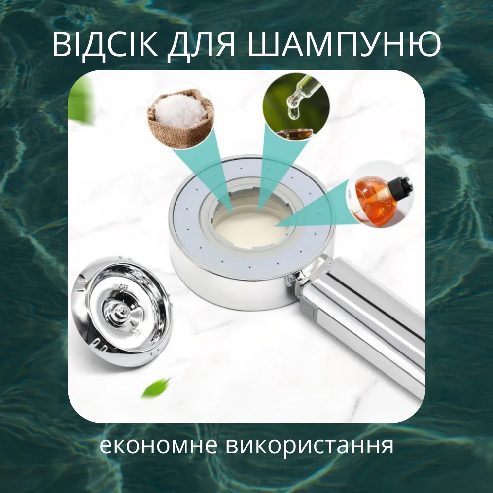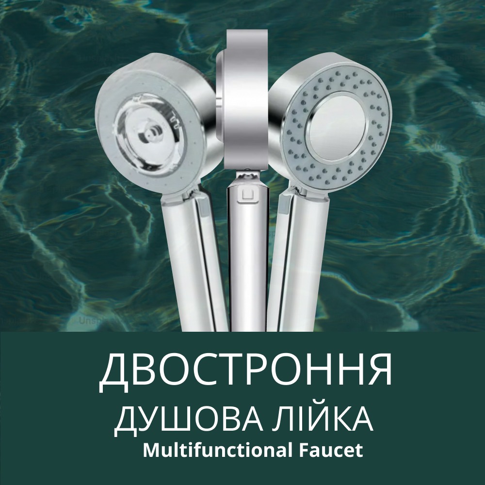 Двостороння душова лійка Multifunctional Faucet функціональне рішення для ванної кімнати. Якісна, створена у сучасному дизайні, ця двохстороння лійка задовільнить усі ваші потреби, адже вона має три режими – спа, масаж та їх поєднання, якщо забажаєте. Окрім цього, наявний відділ для шампуню, що зекономить засоби для догляду за тілом.
