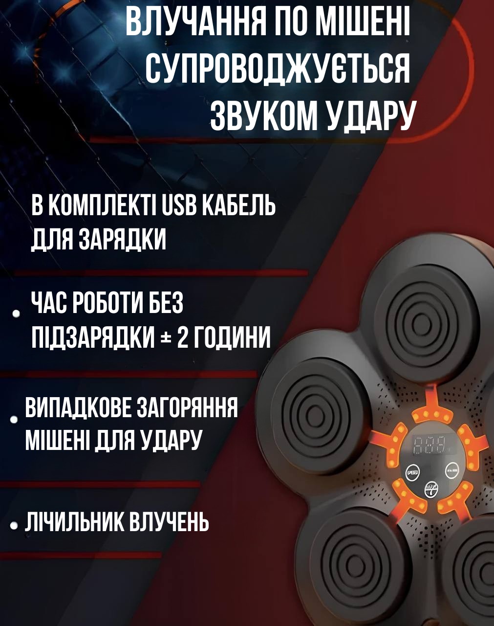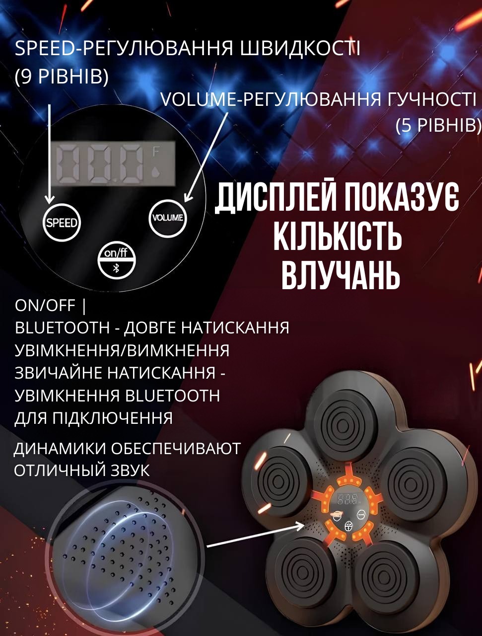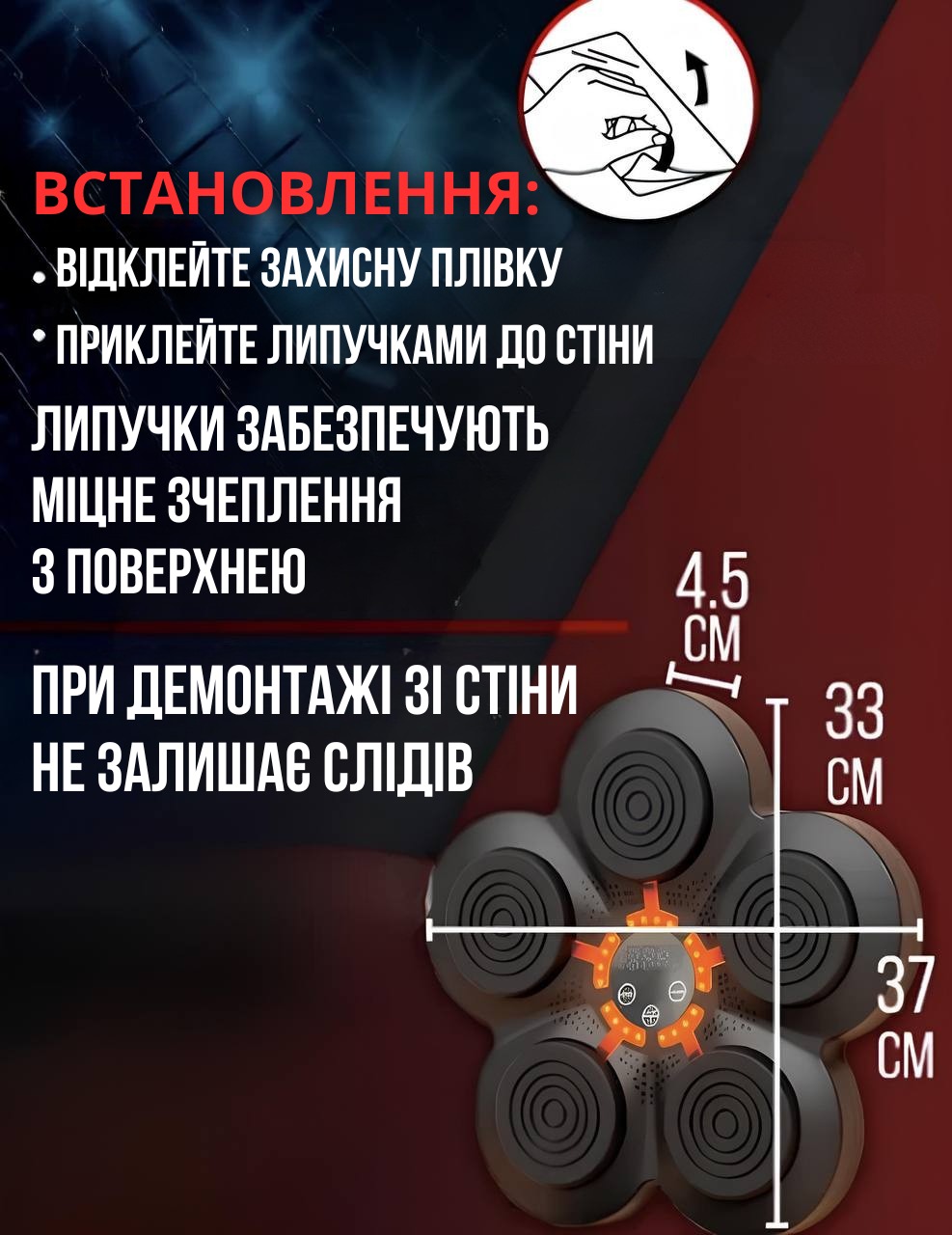 Бокс стінна мішень 40 см, 5 цілей, музика, рукавички — для тренувань вдома