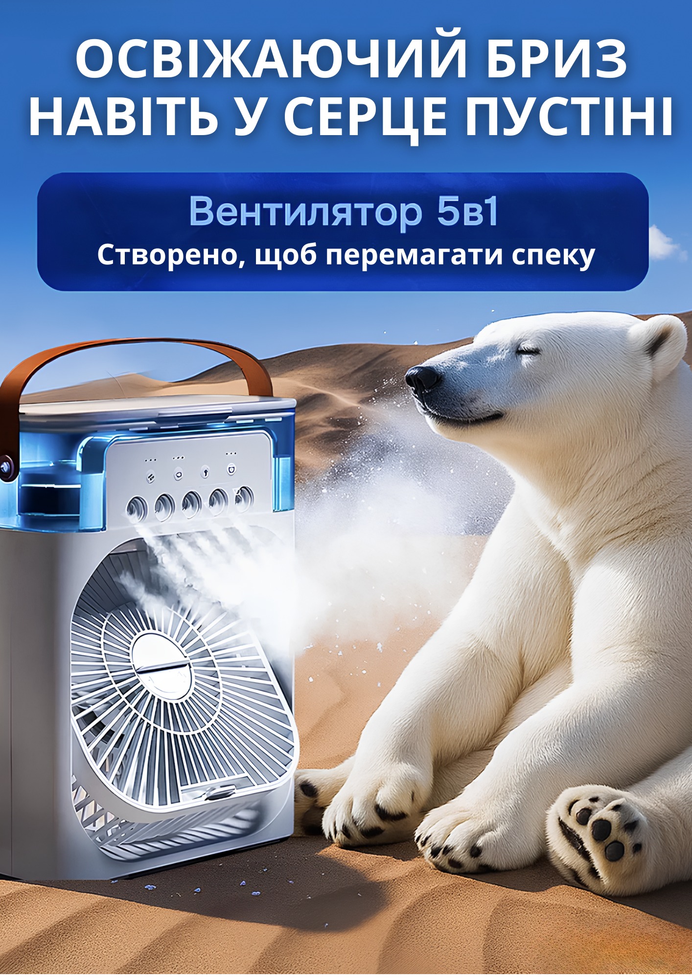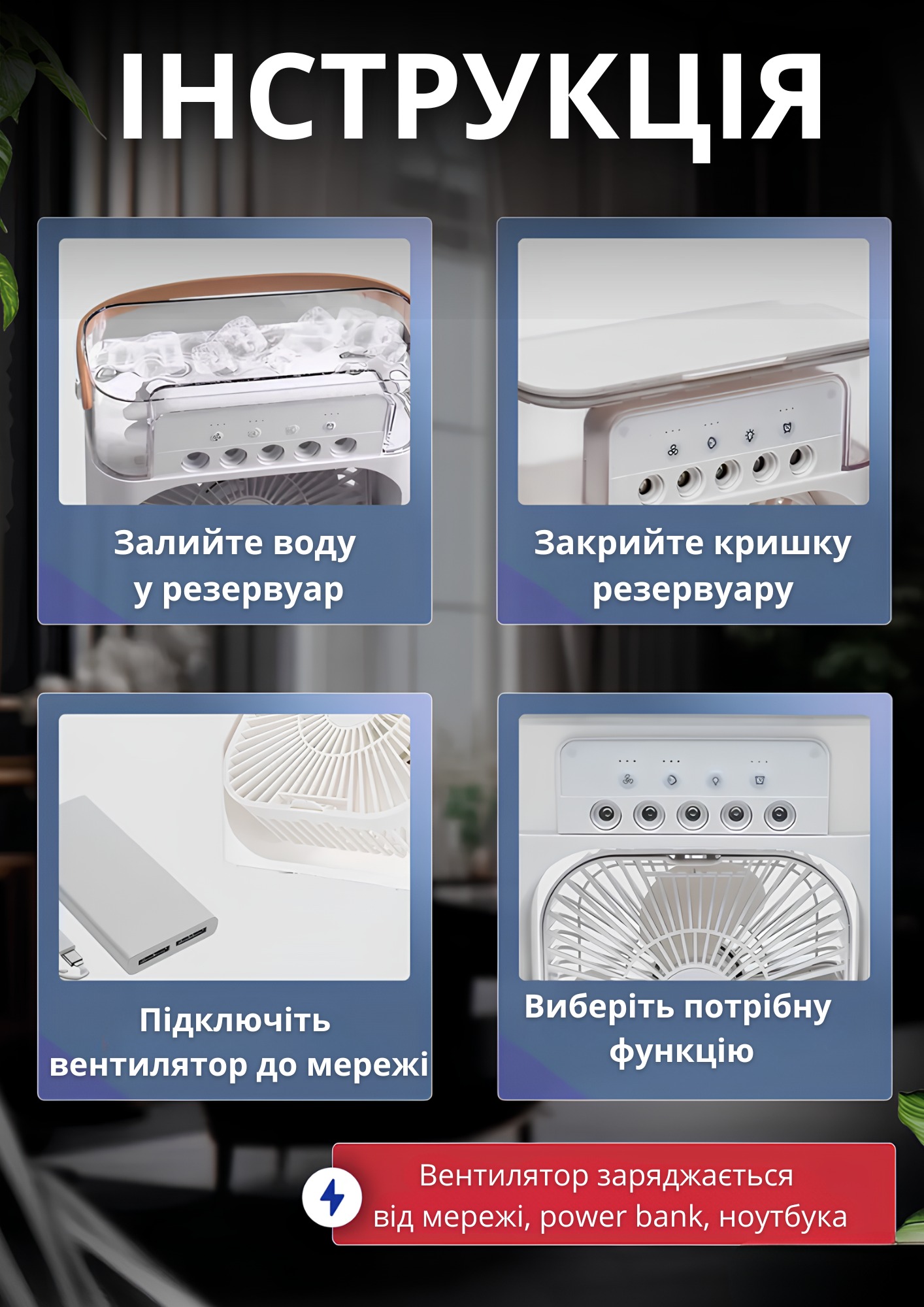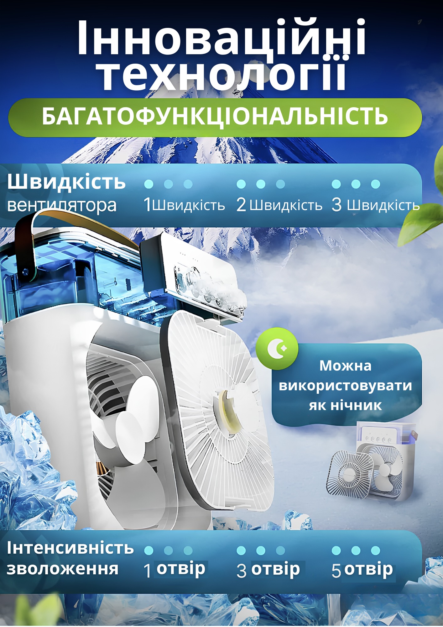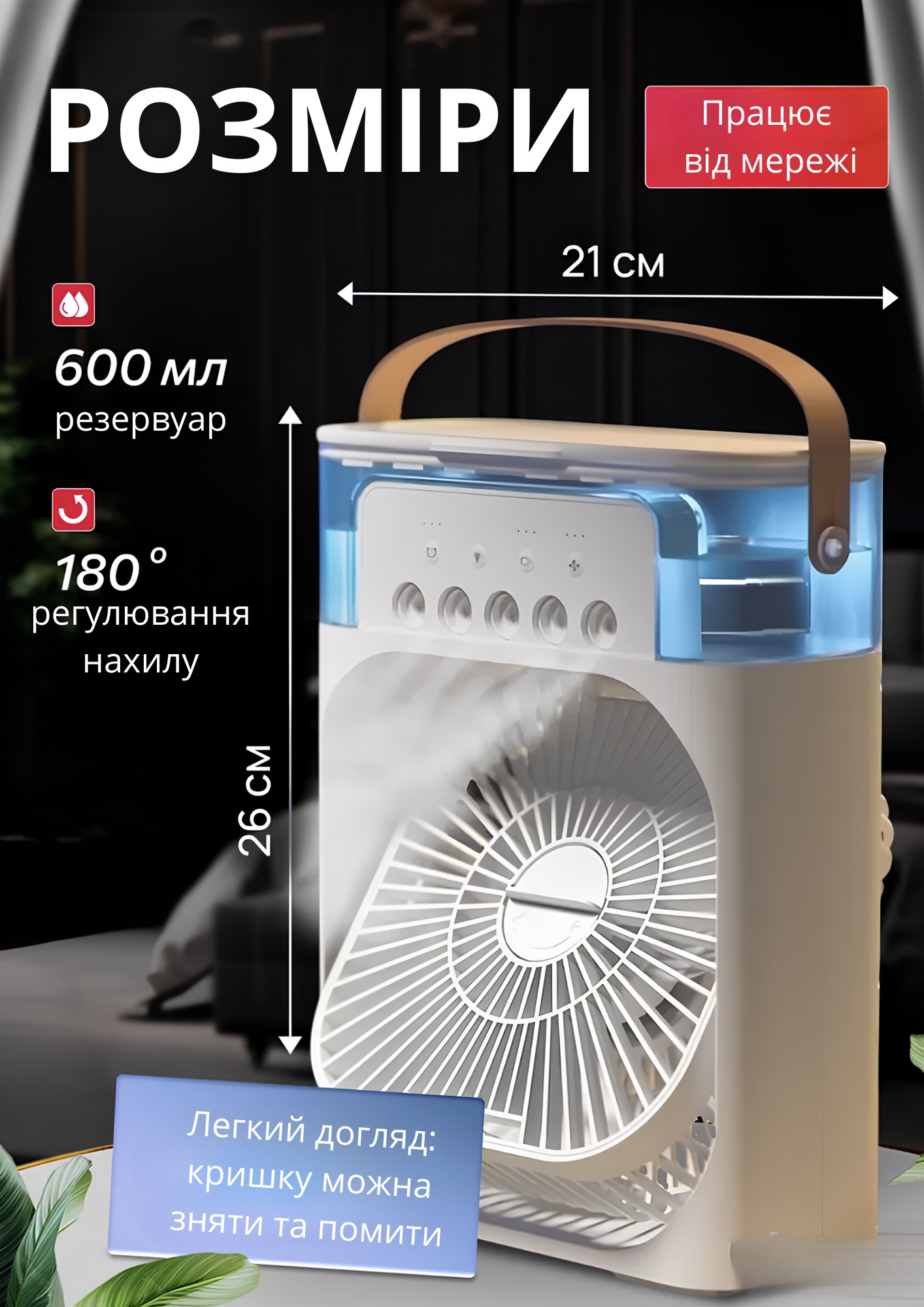 Мобільний 3в1 — вентилятор, зволожувач та охолоджувач з LED-підсвіткою