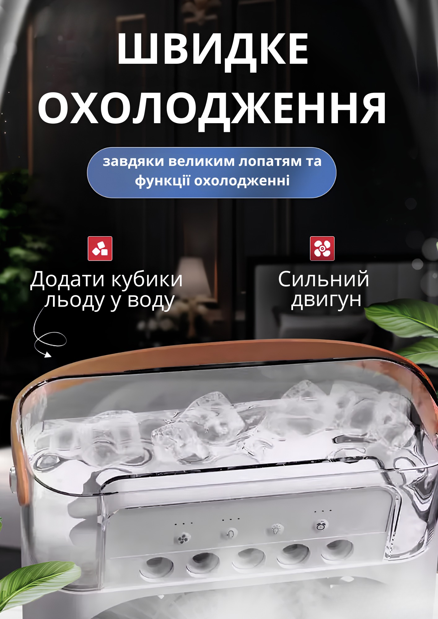 Стильний та компактний міні кондиціонер 3в1 — ідеальне рішення для спекотних днів. Він поєднує в собі функції вентилятора, зволожувача та охолоджувача повітря, забезпечуючи комфорт і свіжість у будь-яких умовах: вдома, в офісі чи під час подорожей. Має 3 режими роботи, 7-колірну LED-підсвітку та таймер. Просто додайте холодну воду або лід — і насолоджуйтесь прохолодою.
